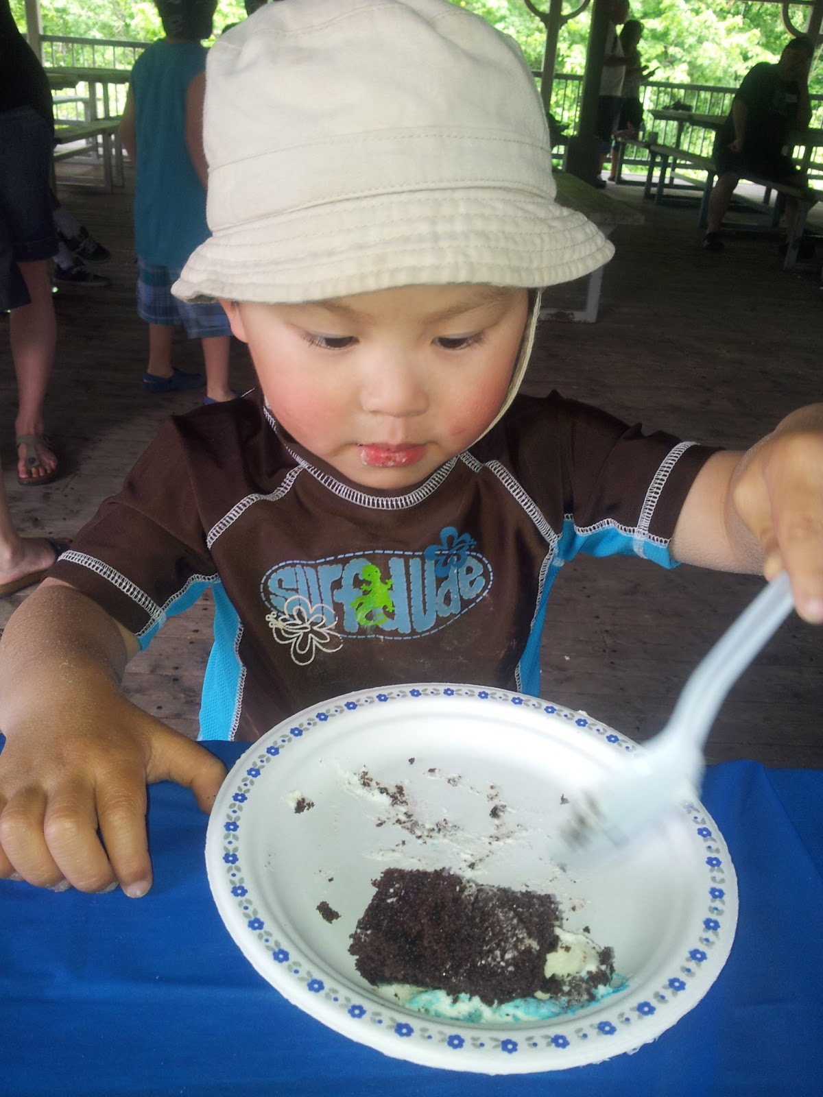 Two weekends ago, Mark and Momma attended the annual Mitchell's Medals day sponsored by the Elgin Children and Family Services. This event has been held annually since a tragic event that occurred where the need to promote water safety became a major focus for the children in the care of the CAS service. The day started with time at the YMCA in St. Thomas where the children are encouraged to work with a lifeguard to promote their water skill and safety. The next stop was a action filled day at Pinafore Park in St. Thomas. There was a BBQ, popcorn, cake and lots of events for the kids. Mark was very excited and did not sit down the whole time we were there except to eat his cake and get his face painted. Momma was very tired at the end of the day but it was wonderful to see him enjoy all the fun. I tried to get him focused on making a necklace of beads so that I could sit down for a few minuets but he lasted about forty-five seconds and then rushed off again. Essentially he was running away from sleep and kept running so that he did not stall out. He especially liked the goats, geese and the fancy chickens. He seemed quite fascinated by the reptiles but still was a bit scared and did not want to hold the snakes or go into the enclosure to be with the alligator or tortoise. Whew!!! Momma would have leaped into a pit of snakes to save you but only if necessary. The day ended with Mark having three pieces of cake and then having his face painted as a pirate. I had promised to take him over to the water park and the swings so it was almost 5:00 p.m. before I wrestled him into the car to come home. A very long day that started at 7:00 a.m. When we got home I put him right in bed with some of the face paint still on. What a great day! Thanks Elgin CAS for the day and the lesson in water safety. Mitchell you will always be remembered. To have one of your medals will be something that I will encourage Mark to strive for. He will have to practice more in the water, but hopefully next year he will be able to claim one.